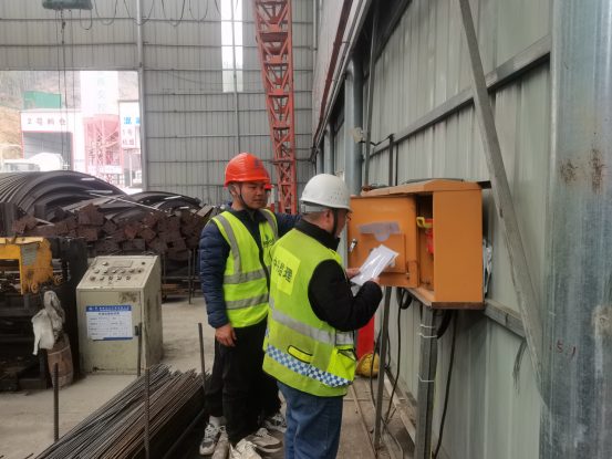 太蕲高速项目监理工程师正在周家冲隧道出口钢筋加工厂做复工安全隐患排查